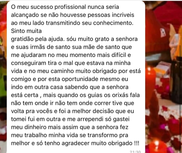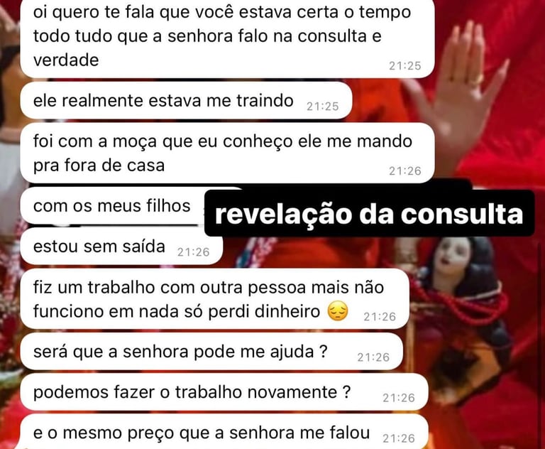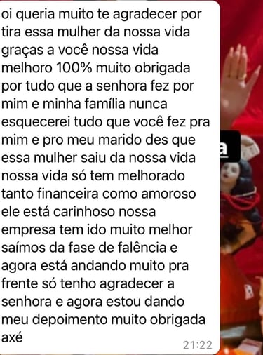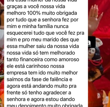Sou especialista em amarração amorosa, união de casais, afastamento de rivais, limpeza espiritual, abertura de caminhos e trabalhos voltados à vida amorosa, financeira e profissional. Cada ritual é conduzido com fé, força espiritual e alinhamento com os guias de luz que me acompanham nessa jornada.